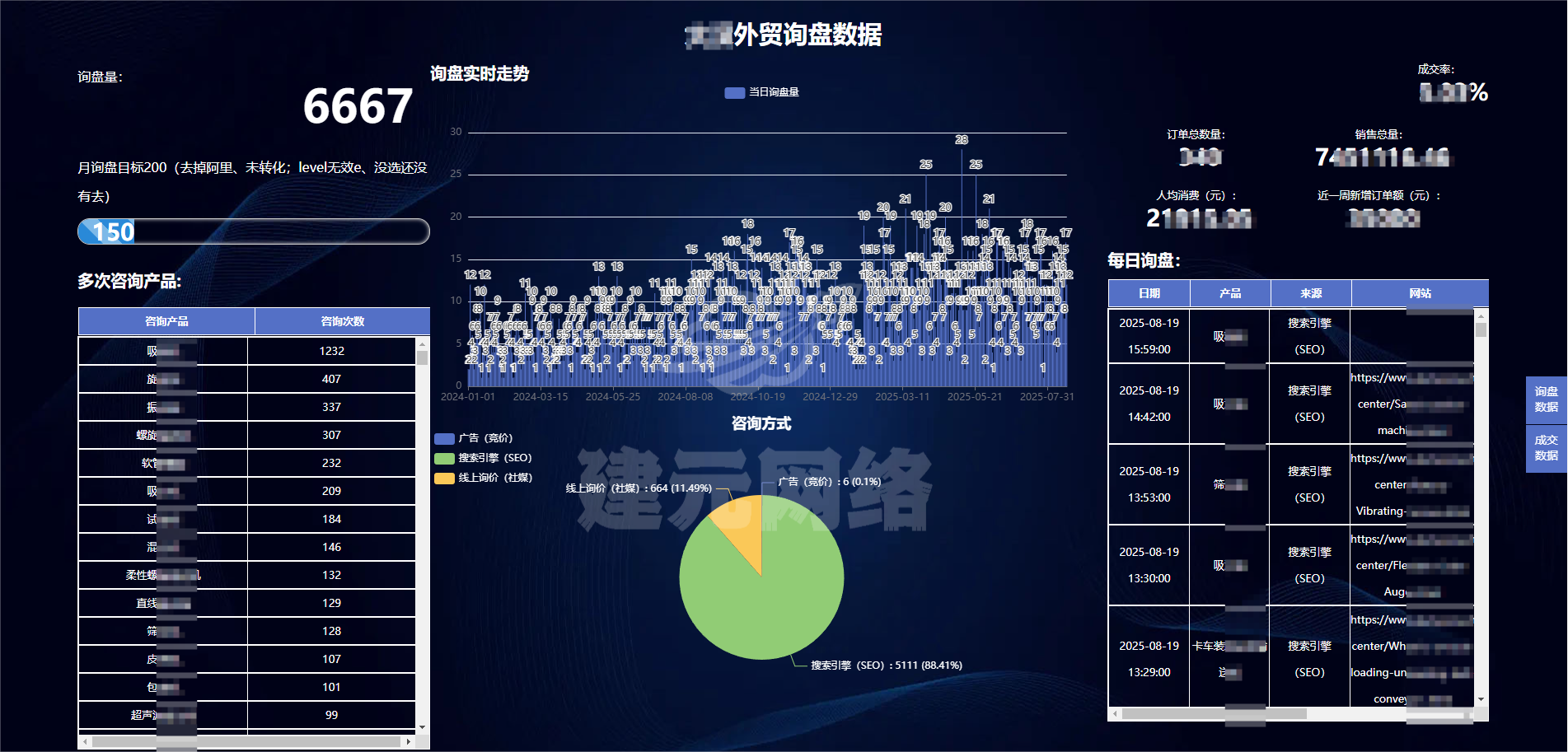 我们的主要目标是放在 有效询盘(成交的精准询盘) 上,日常的更新和维护以询盘为导向。后续运营也可以按照 询盘量 付费,表上更多是过程完成的量(关键词排名,粉丝量……),会有 数据图 统计 直观查询