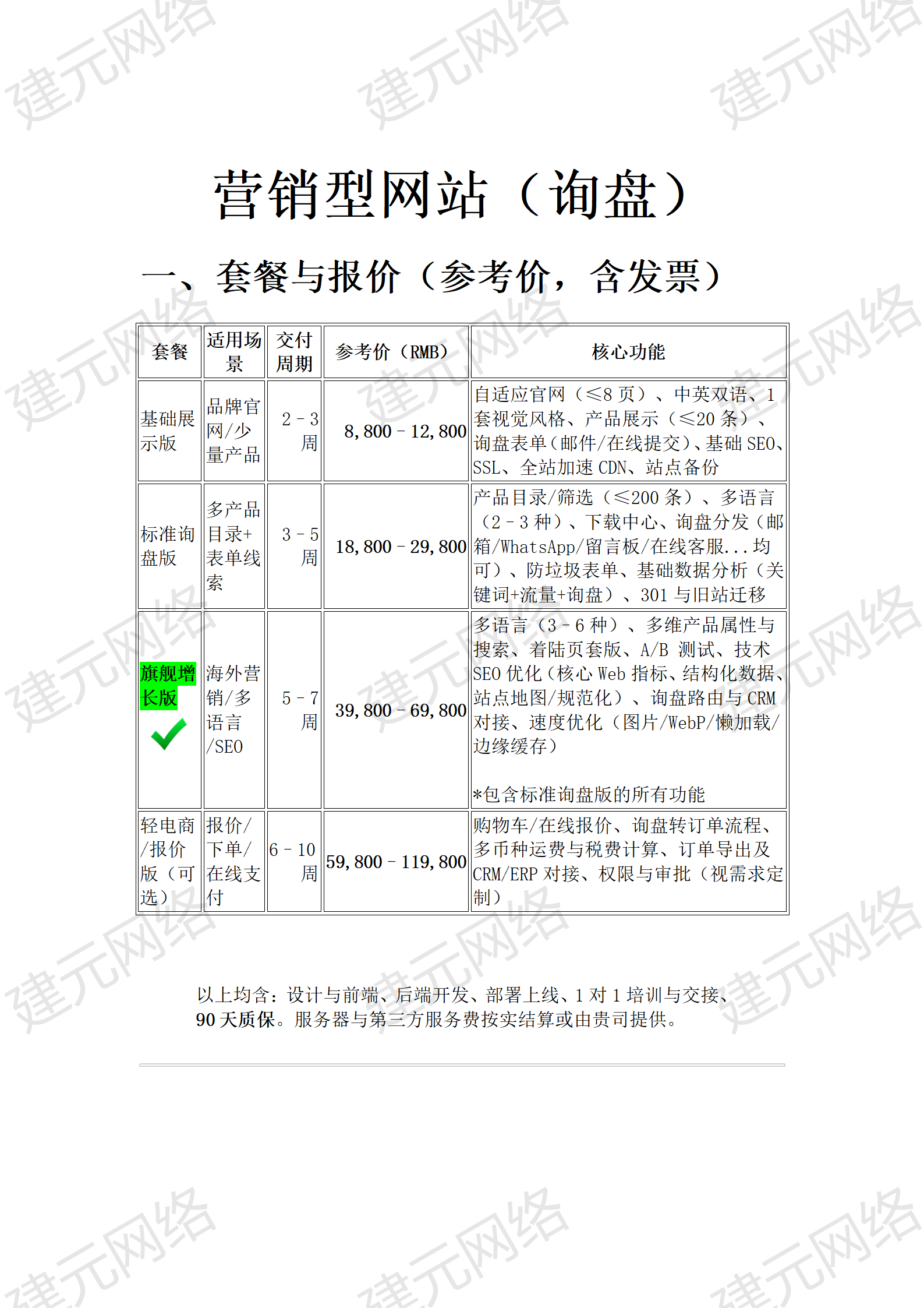 报价包含:网站的价格,交付、运营培训都有,不包括后续的运营(需要人力精力)